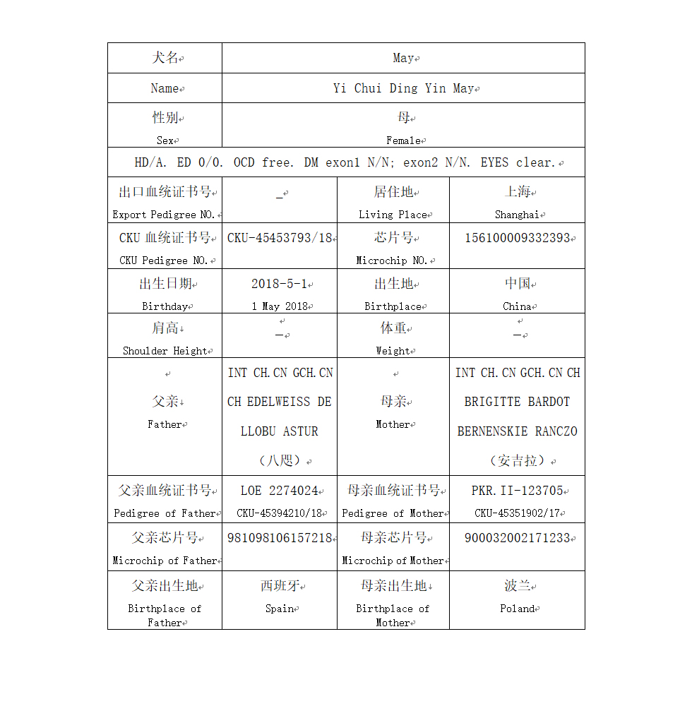 | 比赛日期 | 赛事名称 | 秩序号 | CC | CACIB | BOW | BOJ | BOB | BIG | BIS | 积分 | 年龄组别 | 裁判 |